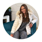 Gerade geschnittener Daunenmantel mit Kapuze aus Kunstpelz - EcruGerade geschnittener Daunenmantel mit Kapuze aus Kunstpelz - Ecru- Regulärer Preis