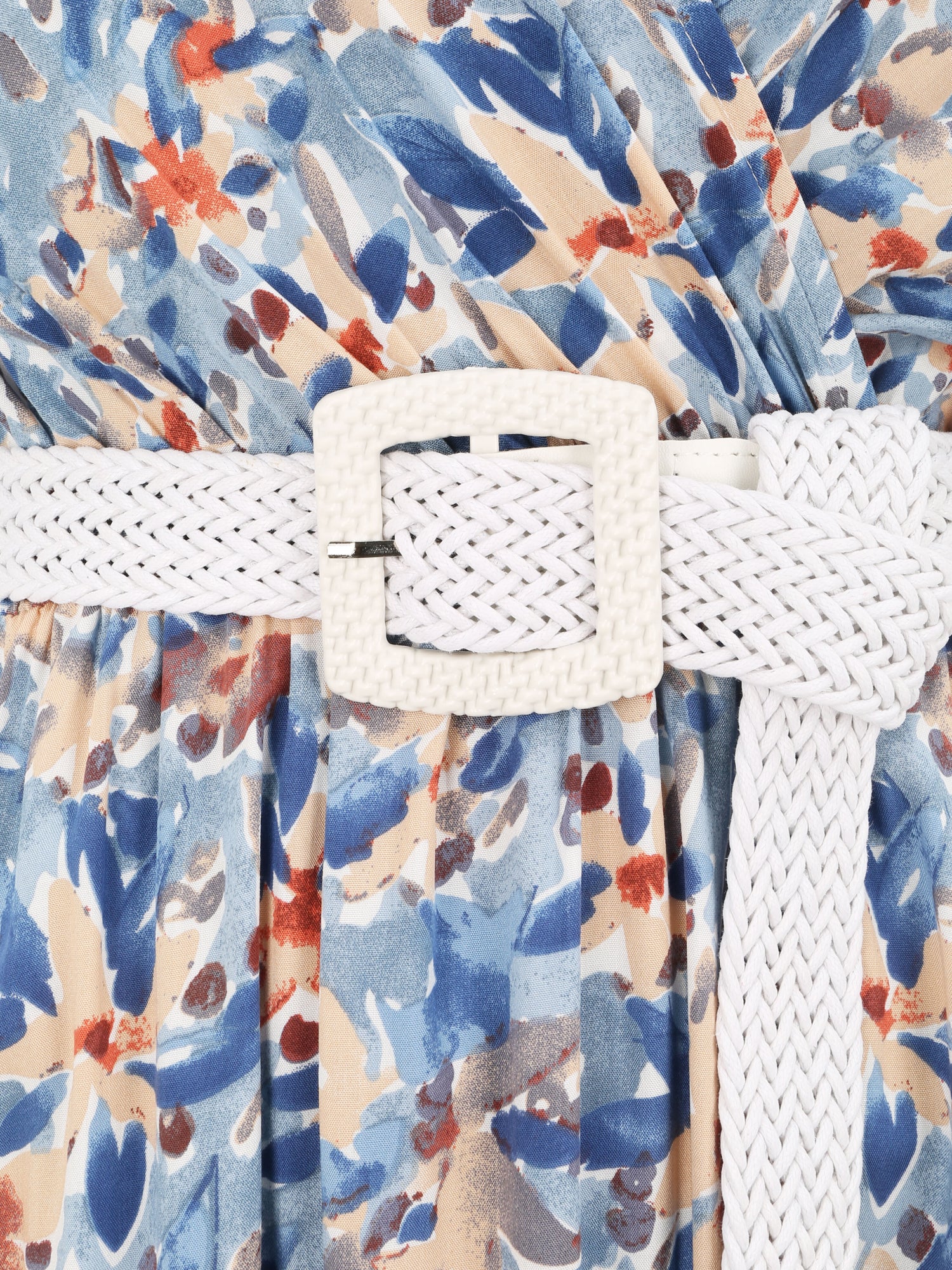 Robe longue empire à manches volantées imprimé aquarelle florale - Bleu/beige - 3