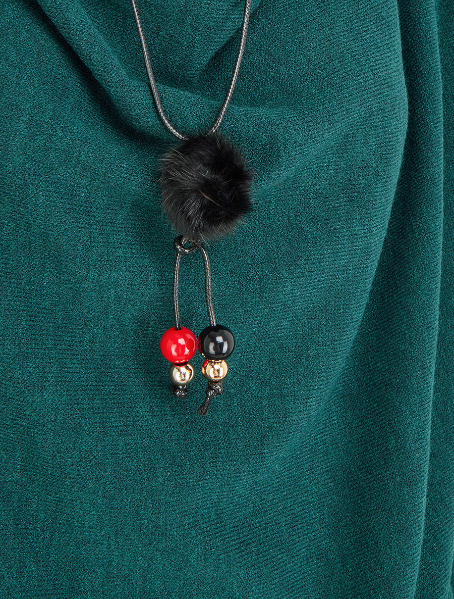 Feiner einfarbiger Pullover mit Wasserfallausschnitt - Tannengrün
