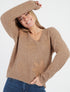 Flauschiger Pullover mit gestickten Blumen - Kamel