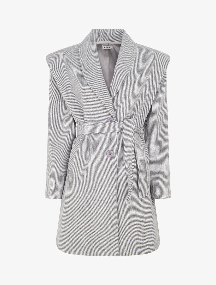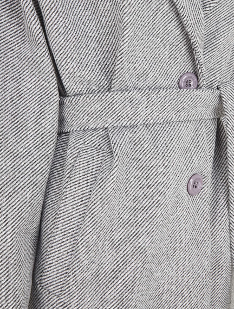 Langer, geknöpfter und gegürteter Mantel. - Grau/Schwarz