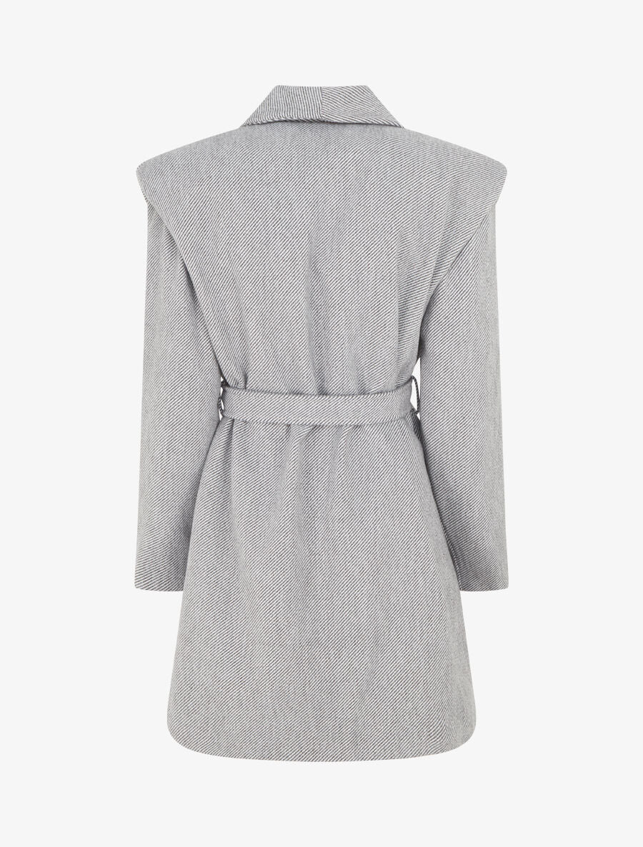 Manteau long boutonné et ceinturé - Gris/noir - 4