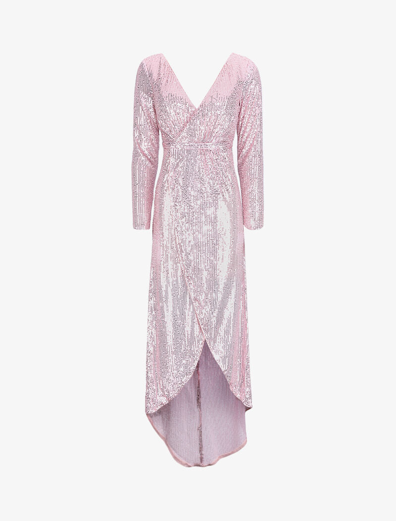 Robe longue à sequins à bords asymétriques - Champagne - 3